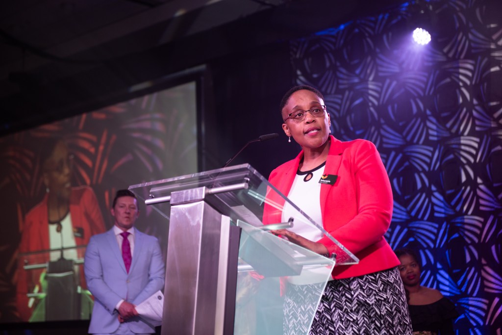 Presenting the NorQuest College Welcoming Workplace Award at the 21/22 Edmonton Mennonite Center for Newcomers RISE Awards